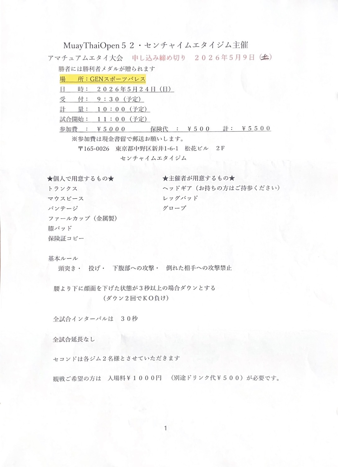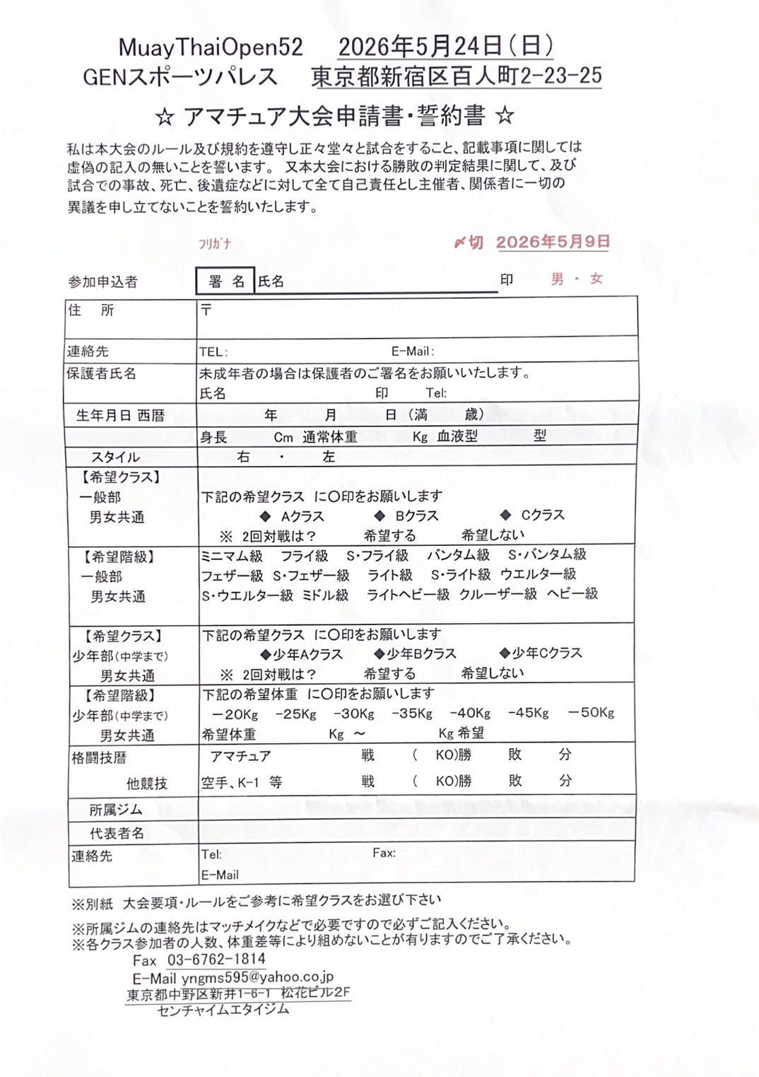 ムエタイオープン52アマチュア大会参加者募集中! 2026年5月24日開催