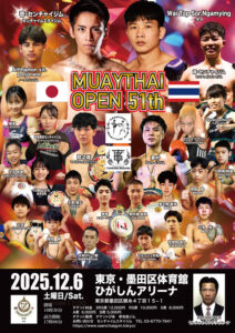 2025年12月6日(土)Muay Thai Open 51場所 墨田区総合体育館・サブアリーナアマチュア大会 10時 試合開始プロ大会 17時 試合開始ご支援、ご協力お願いします! 大会チケットは選手から直接購入いただ […]